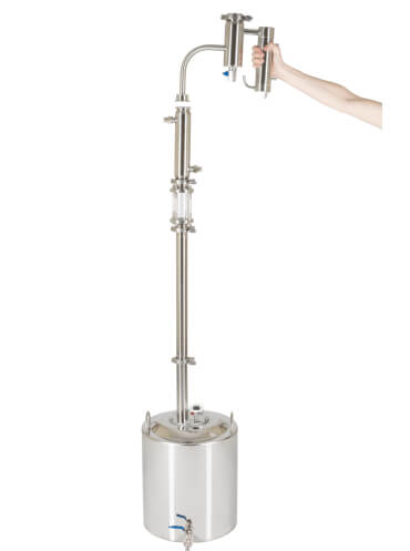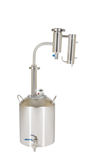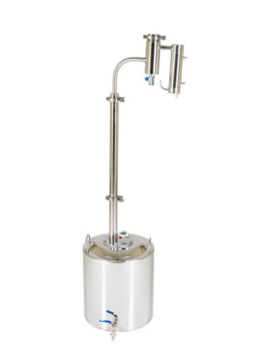 Заключительный этап очистки — сухопарник с краном для слива. На его стенках происходят повторная конденсация и переиспарения спирта. Одновременно с эффективной очисткой происходит и ароматизация напитка. (Попробуйте добавить в сухопарник цедру лимона или ароматные травы).