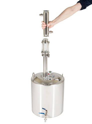 Широкие соединительные трубки диаметром 18 мм и спускной клапан гарантируют полную безопасность при перегонке. Закупорка исключена.